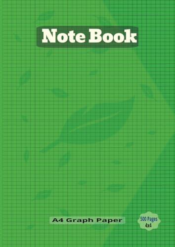 Green A4 Graph Paper Notebook | 500 Pages | Large 8.27 x 11.69 inch | Quad Ruled 4x4 Graphing Composition Book for Students, Engineers, Artists & Math Work