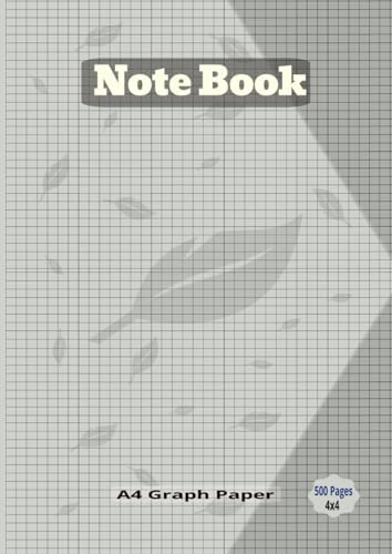 Grey A4 Graph Paper Notebook | 500 Pages | Large 8.27 x 11.69 inch | Quad Ruled 4x4 Graphing Composition Book for Students, Engineers, Artists & Math Work