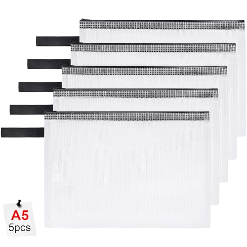 Vicloon Plastplånböcker, 5 st A5 blixtlås låspåsar, nät dokumentplånbok dokumentmappar plastfickor dragkedja fil plånbok för skola kontor läxor resa förvaringsväska (färg: dragkedja)
