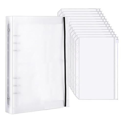 YEYIT A5 ringpärm med 12 st pärmfickor och 1 st pärmskydd, plast, transparent, vattentätt kontantkuvert, fickor med dragkedja, sedelfickor med dragkedja, plastplånbok för kontanter