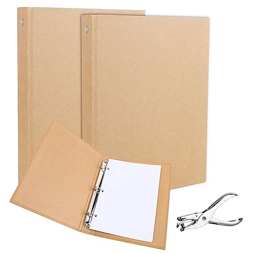RUCUDIM Kraftpapper ringpärm, ringbindare påfyllningsbar, A5 ringpärm, ringpärmsmapp med 3 ringar för att lägga till broschyrfodral scrapbooking papper för skola, kontor – 2 stycken med stans