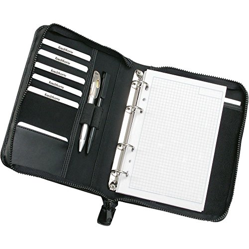 Alassio 30006 ringpärm A5 LUINO, businessmapp av FINEtouch-läderimitation, mapp med ringmekanik, 40 rutiga blad, dragkedja, affärsmapp svart, anteckningsmapp ca 25 × 17,5 × 4 cm