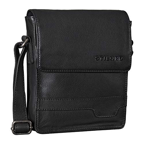 STILORD "Sven" herrväska läder axelväska liten axelväska män 8 tum surfplatta herrväska budväska DIN A5 äkta läder Farbe:Svart