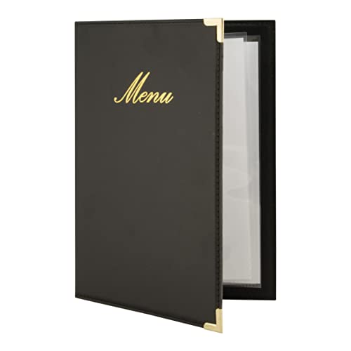 Securit Classic läderoptik menykort inklusive 1 dubbel inlägg för menyer (för 4 sidor A5), läder, svart, 1 x 16 x 19 cm