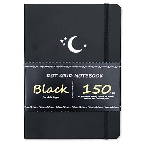 BUKE prickig journal – prickigt rutnät anteckningsbok – 150 gsm inget blödande svart papper – 160 svarta sidor – för kvinnor och män – A5 PU-läder inbunden 14,7 cm x 21,5 cm och presentask måne