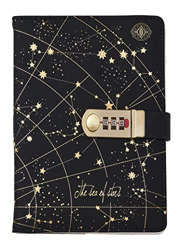NectaRoy anteckningsbok för intidskrift med kod (universum planet), A5 PU läder skrivanteckningsbok med lås, skolskrivbord student brevpapper, 215 x 145 mm