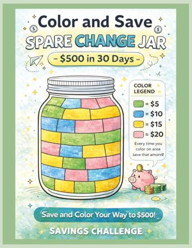 color & save: spare change jar: A No-Shame Coloring Savings Challenge Workbook to Build a $500 Mini Emergency Fund with Spare Change and Calm Money Habits