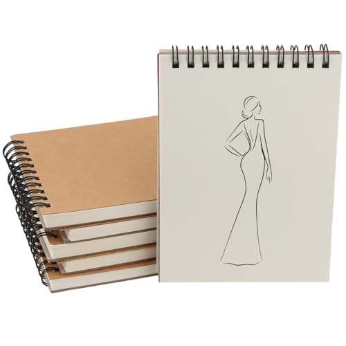 PUCSIQ 6 stycken skissböcker A6 skissblock ritpapper stående format tecken block A6 spiral anteckningsblock 160 gsm kraftlinjerat anteckningsblock för anteckningar ritningar 30 ark/60 sidor