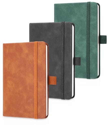 Azyvum A6 Anteckningsbok, set med 3 anteckningsböcker, journalbok, resedagbok, anteckningsbok linjerad a6, anteckningsblock, anteckningsböcker, 100 gsm, 200 sidor, resedagbok, anteckningsbok läder