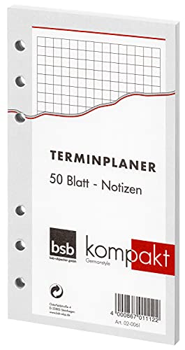 Ersättningsinlägg ”kompakt” – A6, anteckningsblock, rutigt, 50 ark