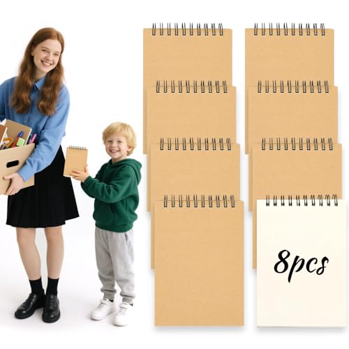 HAKACC Blanko A6 spiral anteckningsblock, 8 stycken små anteckningsböcker, 80 ark, anteckningsbok, skissblock, journal, dagbok, skrivblock, ritblock