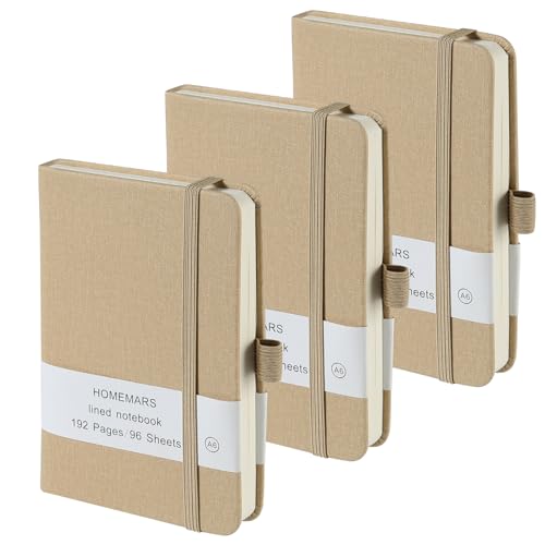 HOMEMARS Anteckningsbok a6, anteckningsbok, anteckningsblock a6, liten anteckningsbok, 3 pack, totalt 288 ark, 576 sidor, beige, 80 GSM, 9,6 x 14,5 cm, inbunden