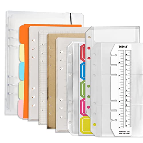 DY.2ten Påfyllningsbart A6 anteckningsblock set med skydd – 6 hål lösa blad PVC-pärmskydd, 80 ark (160 sidor) linjerat papper, kraftpapper, rutigt papper och blankt papper, A6-pärmfickor