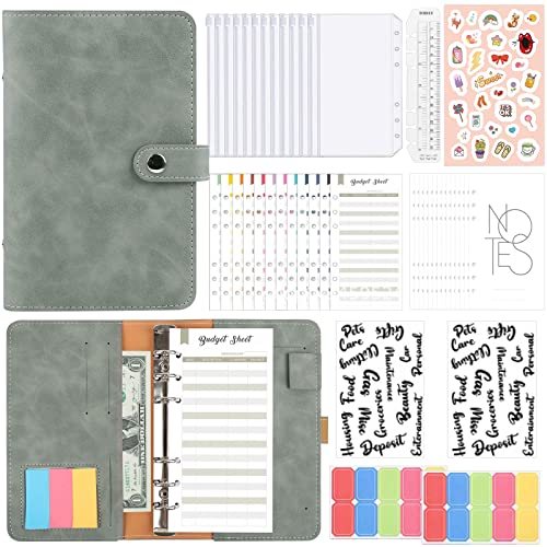 Euqvunn Budget Binder, Budget Planner A6 med kontantkuvert, justerbara spännen, plånbok för att spara pengar, plånbok för cash stuffing för pengaorganisatör, A6 pärm sparbok - Grå