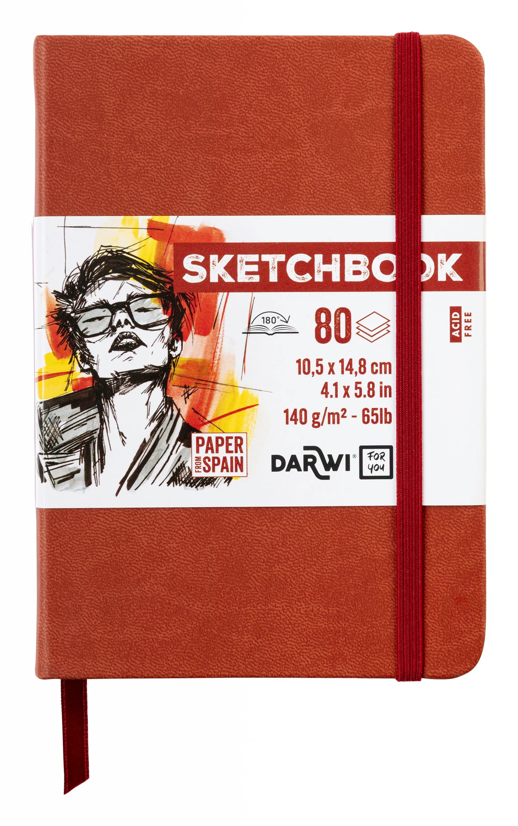 Darwi Sketchbook A6, Terrakottafärgad Pärm (10,5X14,8Cm) 80 Ark Vitt, 140 Grams Skisspapper, Konstläderpärm, Elastisk Förslutning Och Bokmärke (Handgjord I Marocko, Papper Från Spanien).