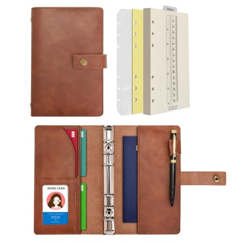 Antner A6 pärm 6 ringar påfyllningsbar anteckningsbok budgetplanerare för A6 fyllningspapper, PU-läder lösa blad personlig planerare plånbok pengararrangör kontanter fyllningspärm med magnetiskt