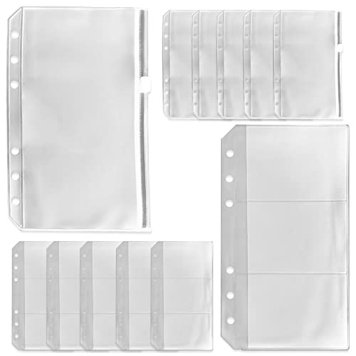 12 st fickor i A6-storlek, blixtlåsficka, förvaringsväska med 3 fickor, två typer, klar pärm med 6 hål, dragkedja, vattentät PVC-dragkedja, lösa bladväskor för hemmakontor, skolmaterial