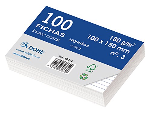 Dohe - Linjerade Kartongkort (100 st) - Kort för Anteckningar, Storlek A6 (15x10 cm), 180 g/, Nr 3, Kontorsmaterial - Vit