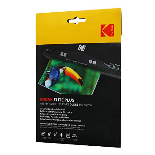 KODAK | Lamineringsväskor i storlek A6 | Paket med 25 | 160 mikron tjocklek | KODAK märkeskvalitet