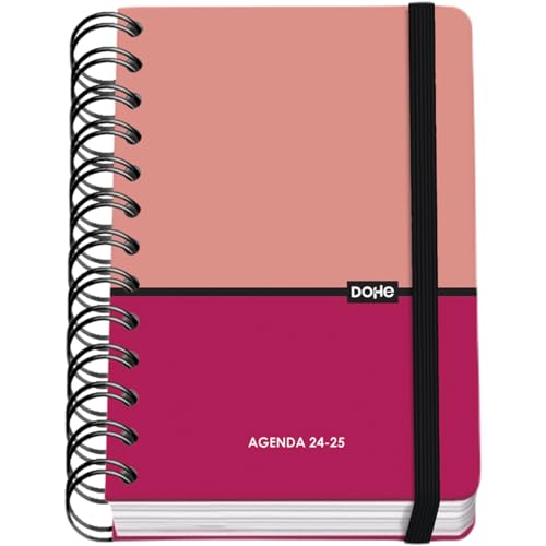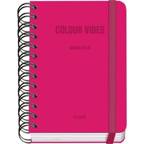 Dohe - Skolkalender 2025 2026 - Dag per sida, Storlek A6 (12x17 cm), Spanska och Engelska, Dubbelspiralbindning och Resårband, Hårt omslag, 4 Klistersidesark - COLOUR VIBES Rosa