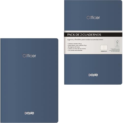 DOHE - Anteckningsböcker för A6 (2 st.) - Storlek 9 x 14 cm, 40 ark (80 sidor), 90 gr/m², anteckningar, organisation eller ritning, flexibelt mjukt omslag - OFFICER Blå