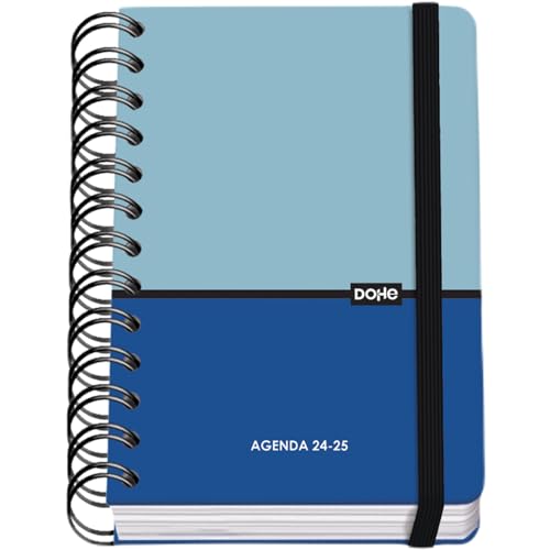 Dohe - Skolkalender 2025 2026 - Dag per sida, Storlek A6 (12x17 cm), Spanska och Engelska, September till Juni, Spiralbindning, Mjukt omslag - ESENCIAL Blå