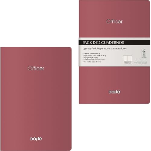 DOHE - Anteckningsböcker i A6 (2 st.) - Storlek 9 x 14 cm, 40 ark (80 sidor), 90 gr/m², anteckningar, organisation eller ritning, flexibelt mjukt omslag - OFFICER Bordeaux