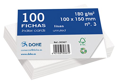 Dohe - Olinjerade Kartongkort (100 st) - Kort för Anteckningar, Storlek A6 (15x10 cm), 180 g/, Nr 3, Kontorsmaterial - Vit