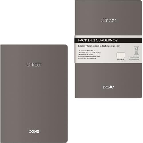 DOHE - Anteckningsböcker för A6 (2 st.) - Storlek 9 x 14 cm, 40 ark (80 sidor), 90 gr/m², anteckningar, organisation eller ritning, flexibelt mjukt omslag - OFFICER Grå