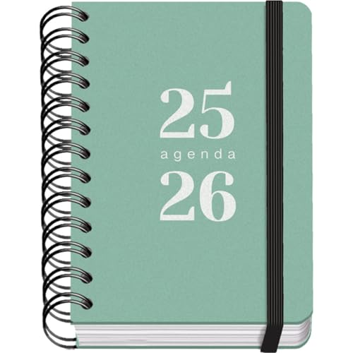 Dohe - Skolkalender 2025 2026 - Dag per sida, Storlek A6 (12x17 cm), Spanska och Engelska, September till Juni, Spiralbindning, Mjukt omslag - ESENCIAL Grön