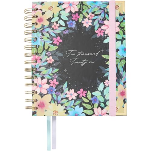 Takenote Agenda 2026 - Storlek A6 (13,5x18 cm), Veckovy, Årsplanerare 12 Månader Januari till December, Dubbel Guldig Spiral, Dubbel Bokmärke, Elastiskt Band, Spanska och Engelska - Diana