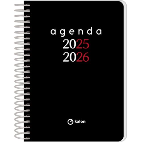 Dohe - Skolkalender 2025 2026 - Dag per sida, Storlek A6 (12x17 cm), Spanska och Engelska, September till Juni, Spiralbindning, Mjukt omslag - ESENCIAL Svart