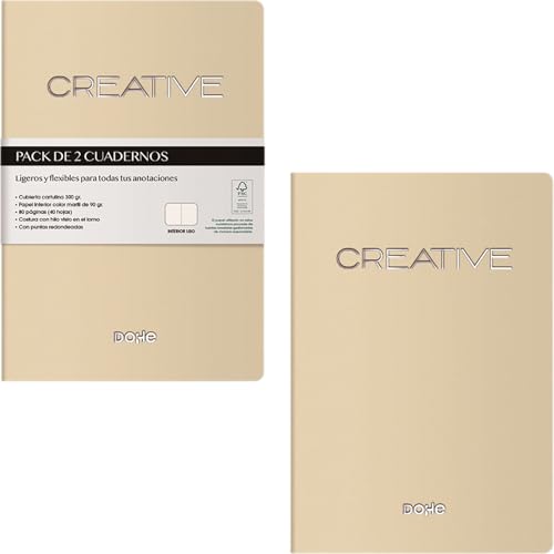 DOHE - Anteckningsböcker för A6 (2 st.) - Storlek 9 x 14 cm, 40 ark (80 sidor), 90 gr/m², anteckningar, organisation eller ritning, flexibelt mjukt omslag - kreativ beige