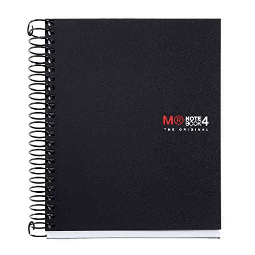 Miquelrius - Mikroperforerad spiralanteckningsbok, ogenomskinlig polypropenomslag, A6-storlek 105 x 148 mm, inga hål, 140 ark på 70 g/m² och 4 färgränder, 5 mm rutnät, Svart