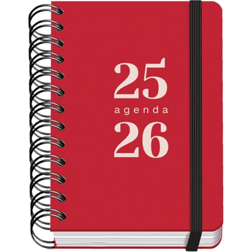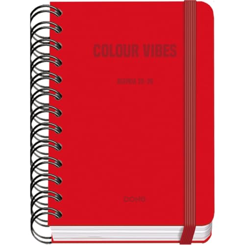 Dohe - Skolkalender 2025 2026 - Dag per sida, Storlek A6 (12x17 cm), Spanska och Engelska, Dubbelspiralbindning och Resårband, Hårt omslag, 4 Klistersidesark - COLOUR VIBES Röd