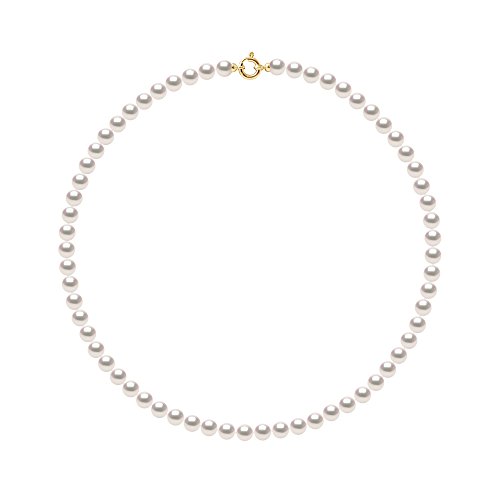 Pearls & Colors - AKOYA äkta runda odlade pärlor halsband - Japan certifierat ursprung - 7–7,5 mm - AA+ kvalitet - rosa vit - Prestige marin ring, Pärla, Pärla