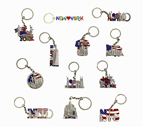 TSY TOOL 12-pack New York NYC metall nyckelring ring bunt souvenir samling presentset Ãâ'â'â'¬' inkluderar Empire State Freedom Tower Statue of Liberty USA flagga och mer