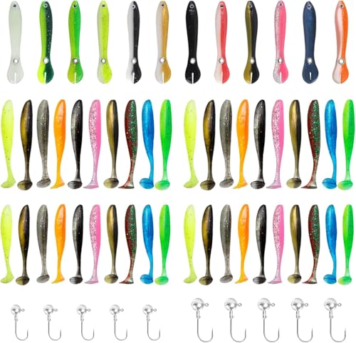 SagaSave Paddling svans fiskedrag 50-pack 4 färger mjuk plast badbete, mjuka plastbadbeten Jerk bete, bete saltvatten sötvatten artificiellt bete för öring gös abborre fiske