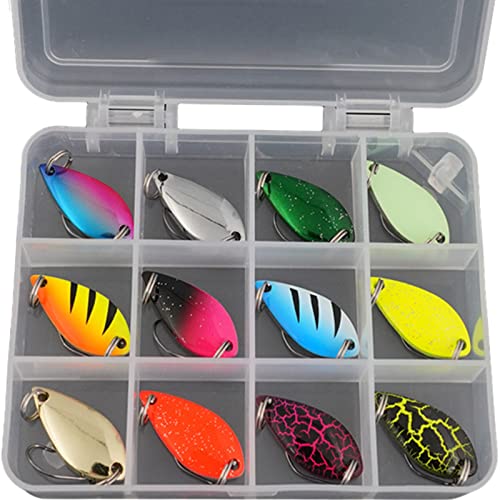12 stycken öringsfiskespoonger, 5 g öring spoonset, öringbete, set för öring, konstgjort bete, spinner blinkersset, öringbete, metallbete, fiske, för saltvatten sötvattensöring abborre lax