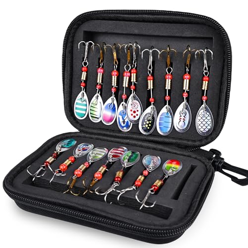 ZEFAN fiskebeteset, 12 stycken blinkers fiske, flerfärgade spinnare fiskeskedar med låda, fiske bete för öring gädda abborre, lax, en storlek