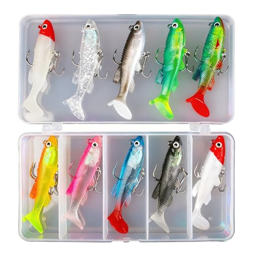 TRUSCEND fiskedrag gummifisk konstgjort bete set fisk fiske öring gös & abborre bete jigghuvuden, BKK/VMC-krok, japansk formel, sötvatten saltvattensfiske gåva för män