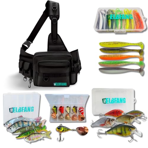 ELBFANG© Fiskeväska fylld med fiskelådor | Full med wobbler-gummifiske konstgjort bete | fisketillbehör för gädda, gös, abborre, fiske