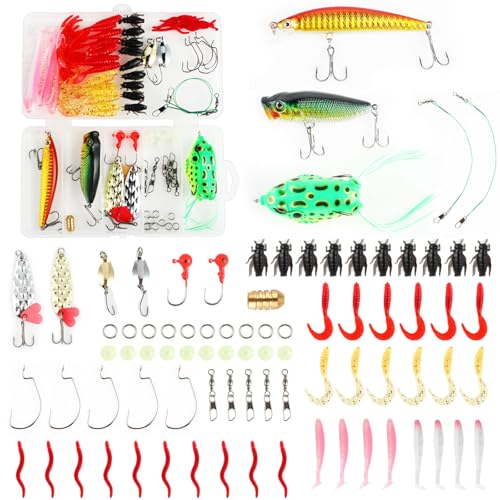 Fisketillbehörsset abborre, bete öring, gummibete, fiske blandat med spinner fiskeset blinkers, förfack fiskedrag för gädda, gös, abborre, sötvatten saltvatten 93 delar