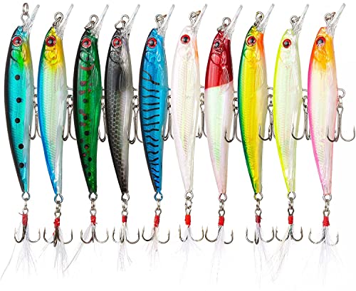 10 st fiskekrok, konstgjort bete, fiske, fiskedrag för gädda, konstgjorda badbeten, fiskedrag kit, långsam sjunkande bionic, baddrag, wobblerset för öring, abborre, gädda, lax