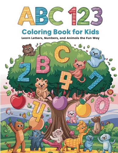 ABC 123 Coloring Book for Toddlers and Kids: Learn Letters, Numbers, and Animals the Fun Way: Educational Coloring Pages for Ages 2-5 to Improve Motor Skills, Creativity, and Vocabulary