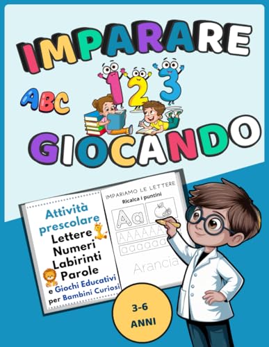 IMPARARE GIOCANDO ABC 123: Attività prescolari per bambini dai 3 ai 6 anni: lettere, numeri, labirinti, parole, giochi educativi e tanto divertimento!