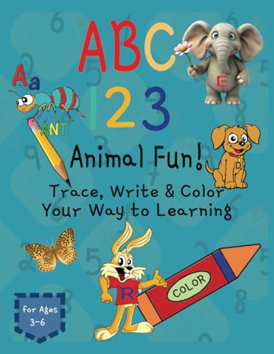 ABC 123 Animal Fun! Trace, Write & Color Your Way to Learning: Ages 3-6! PRACTICE WRITING YOUR ABCs 123 on LINE PAPER, Preschool Activity Book