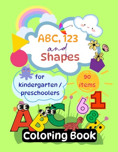 ABC, 123 and Shapes Coloring book for kindergarten and preschoolers: 90 engaging items, including alphabets, matching pictures, numbers, dice with ... random designs to boost learning in a fun way