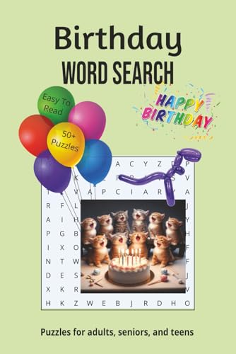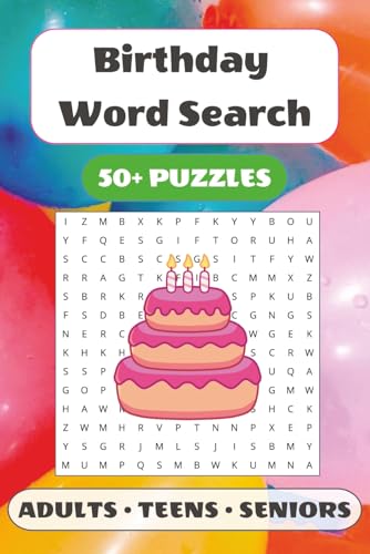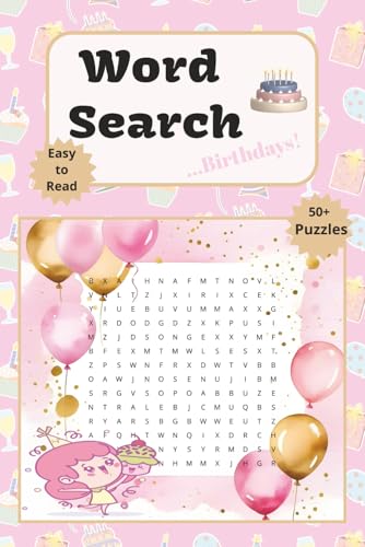 Birthday Word Search Puzzle Book: 50+ Word Find Puzzles with Easy-to-Read Print about Balloons, Cake, Presents and More | 6×9 inches, 110 pages … Gift for Vacations, Holidays and Free Times