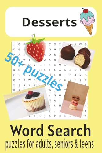 Desserts Word Search Puzzle Book: Word Searches with Easy to Read Print about Desserts, Cake, Cookies, Ice Cream and More | 6x9 inches, 110 pages | ... for Vacation, Holidays and Free Time